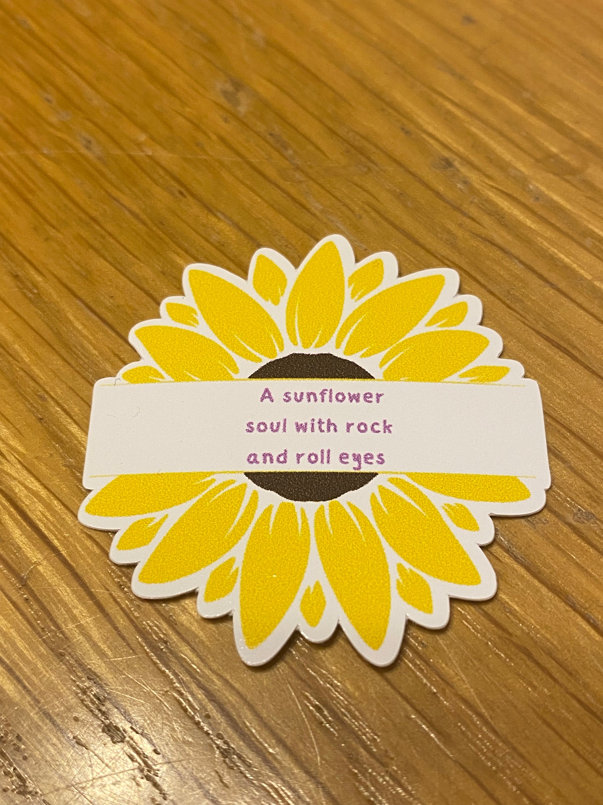 Embrace your true self with our Sunflower Soul die cut sticker! With rock and roll eyes and a vibrant sunflower design, this sticker is a reminder to love yourself and be happy. Bring some light and positivity wherever you go with this quirky and fun sticker.